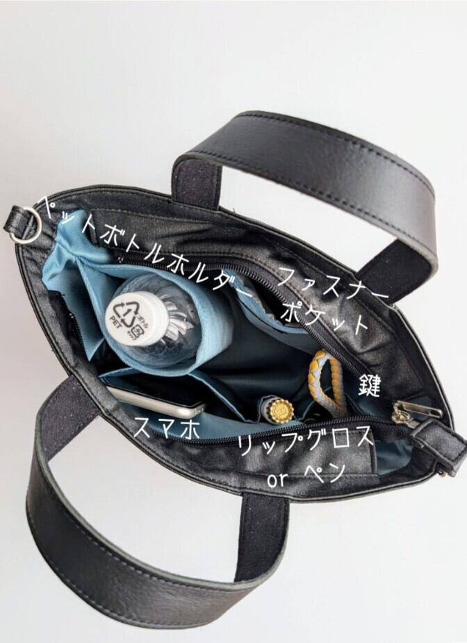 底には固めの底板を入れて縫製しており、型崩れもしにくいです。