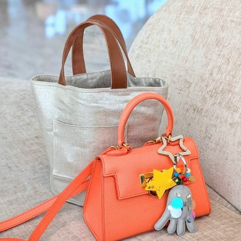 当店オリジナルのシルバー箔加工の麻生地を使用した、夏らしく爽やかなトートバッグです。