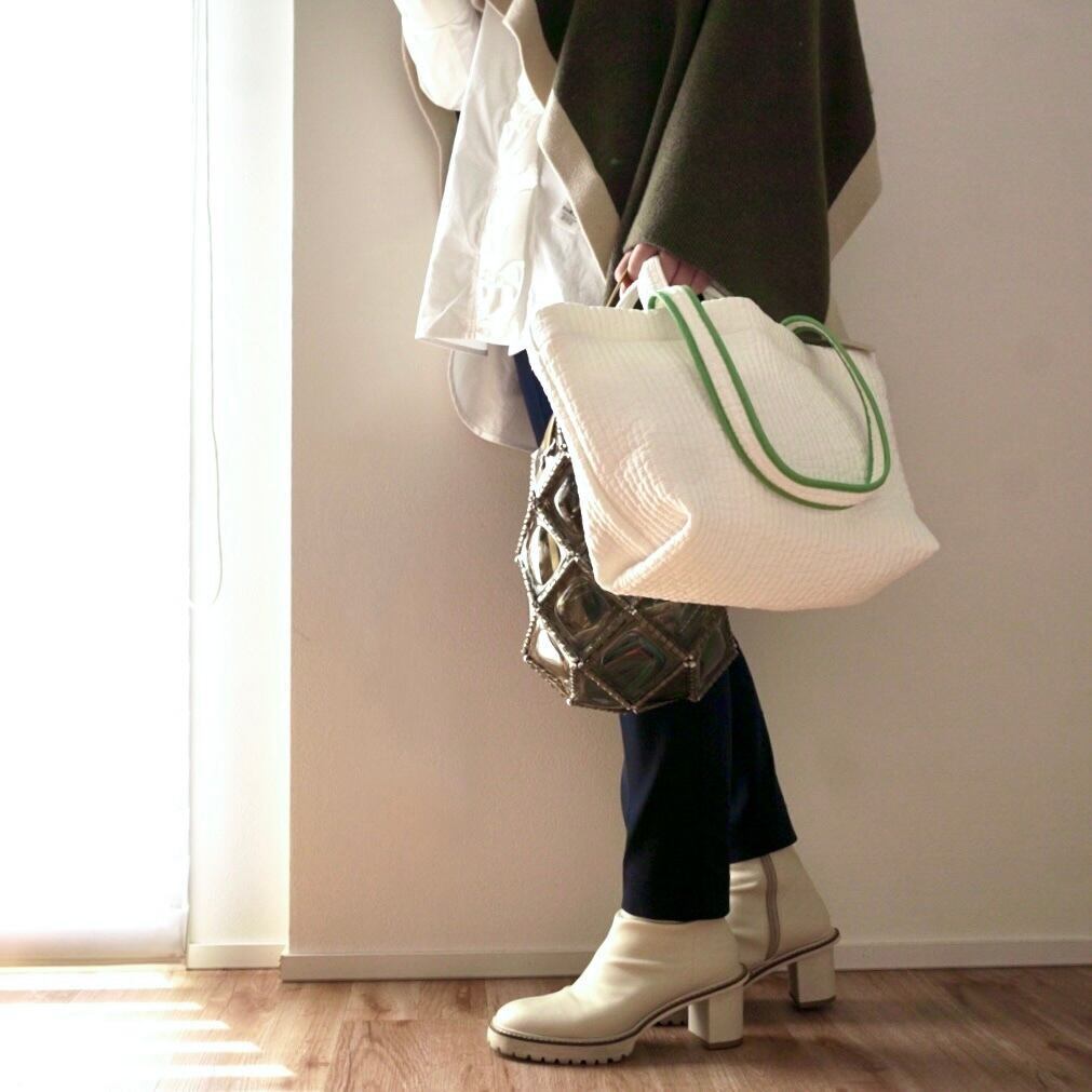 デザインは一部のパイピングにだけアクセントカラーをほどこした、さりげないものに抑えました。お手持ちのバッグとも合わせてコーディネートをお楽しみください。