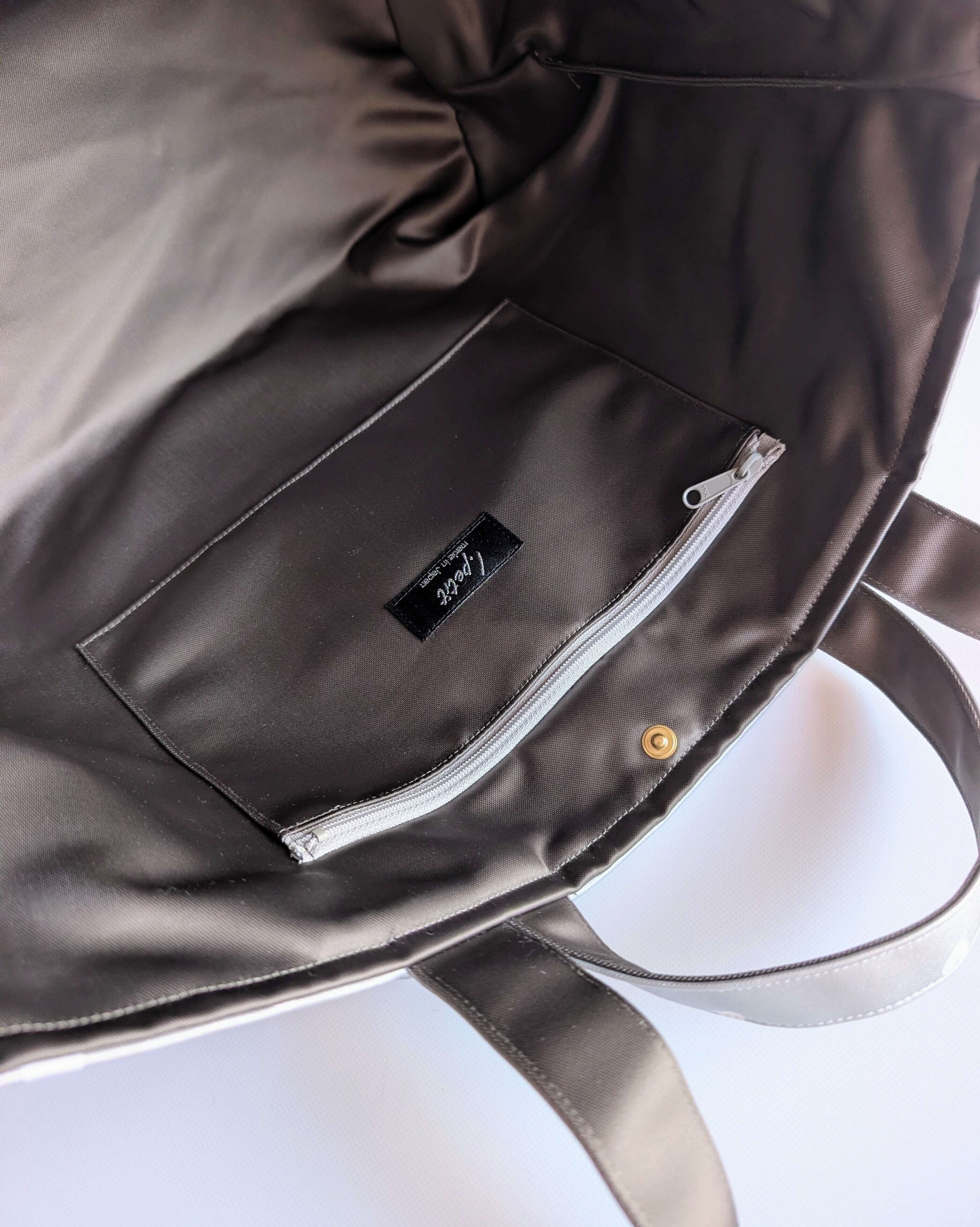 コーヒーやお茶をこぼしてしまっても、さっと拭けばキレイになります。上質な肉厚サテンの裏地も撥水加工がされており、アウトドアなど用途が広がります。