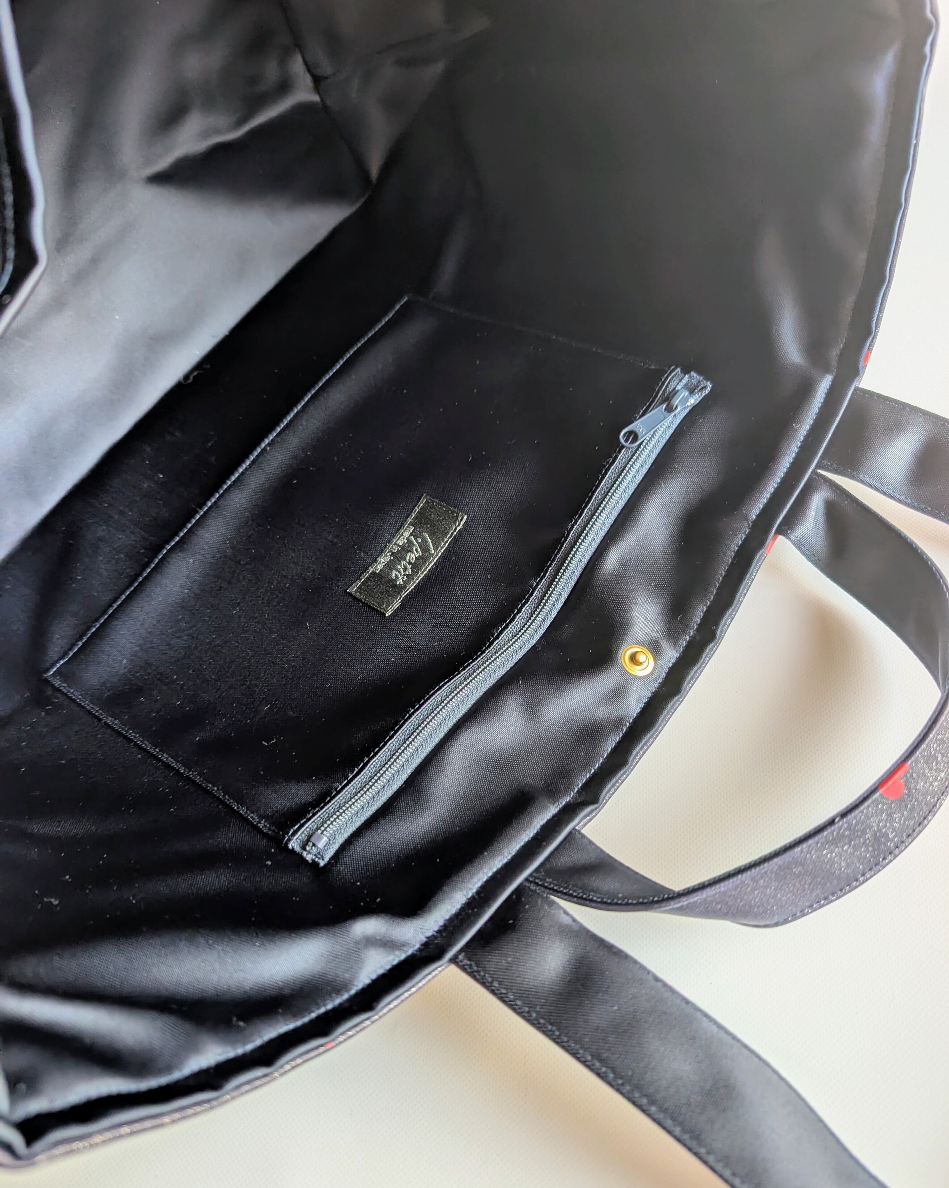 内ポケットは3つ。1つはファスナーポケット付きで貴重品を入れても安心です。
