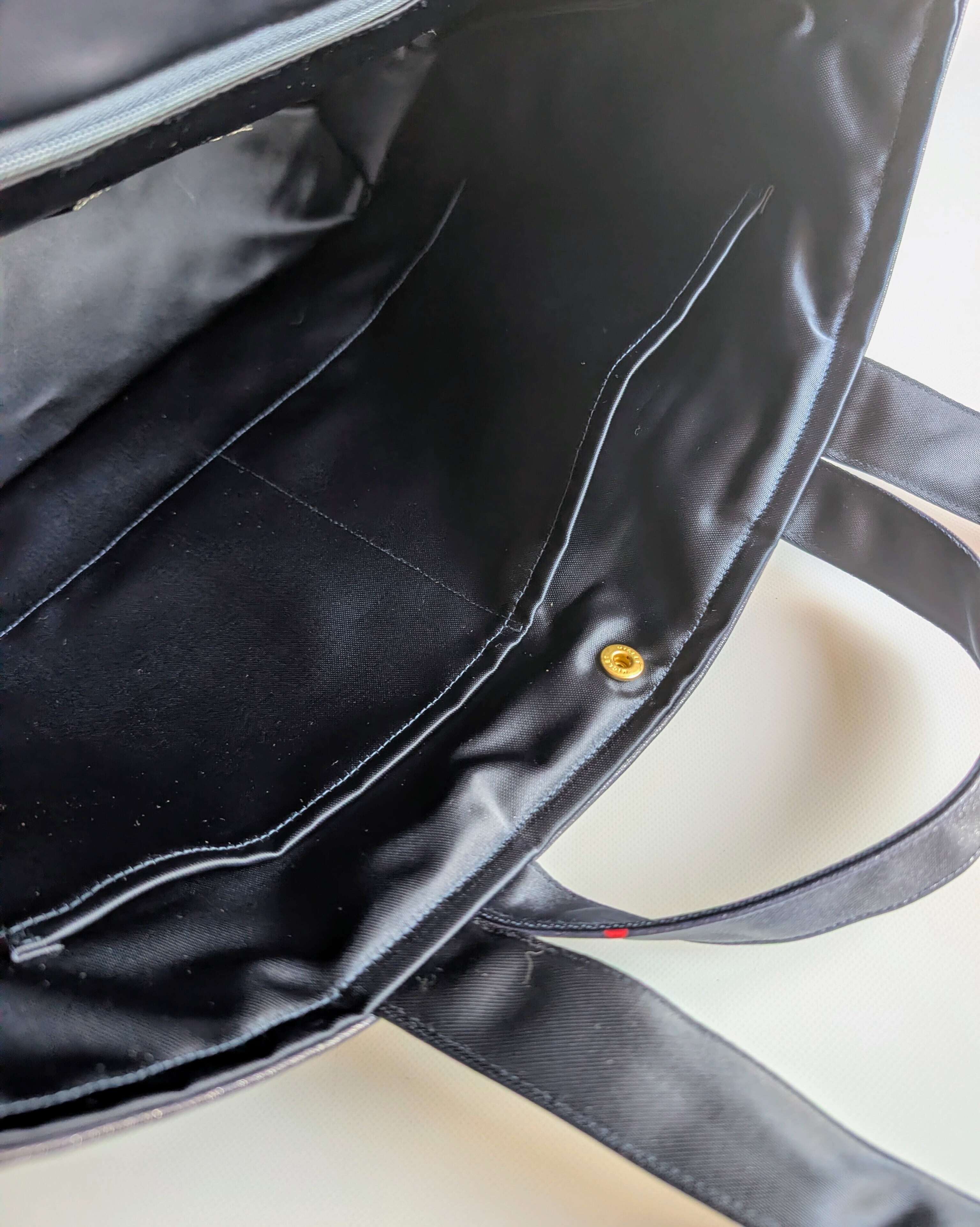 また、出し入れ口のスナップボタンによって、中の荷物のチラ見えや、中の荷物がこぼれ出るのを防ぎます。